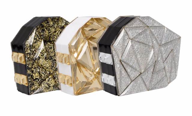 La clutch firmata Genny è realizzata in plexi e inserti geometrici upper class in differenti varianti che la rendono un’irresistibile tentazione all’insegna di magici effetti scenografici: dal coté aurora boreale a quello sparkling con glitter e oro chiaro; dallo specchiato sempre gold fino al silver più luminescente.