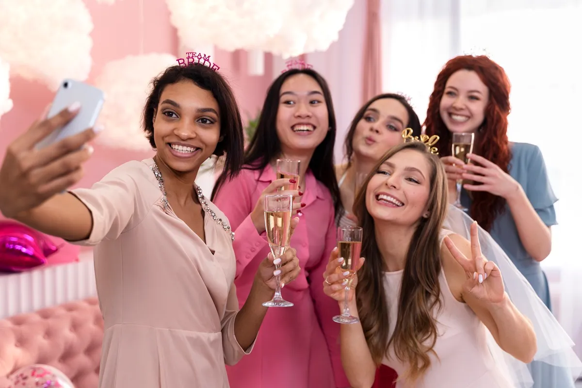Addio al nubilato: brindisi e selfie con le amiche della sposa