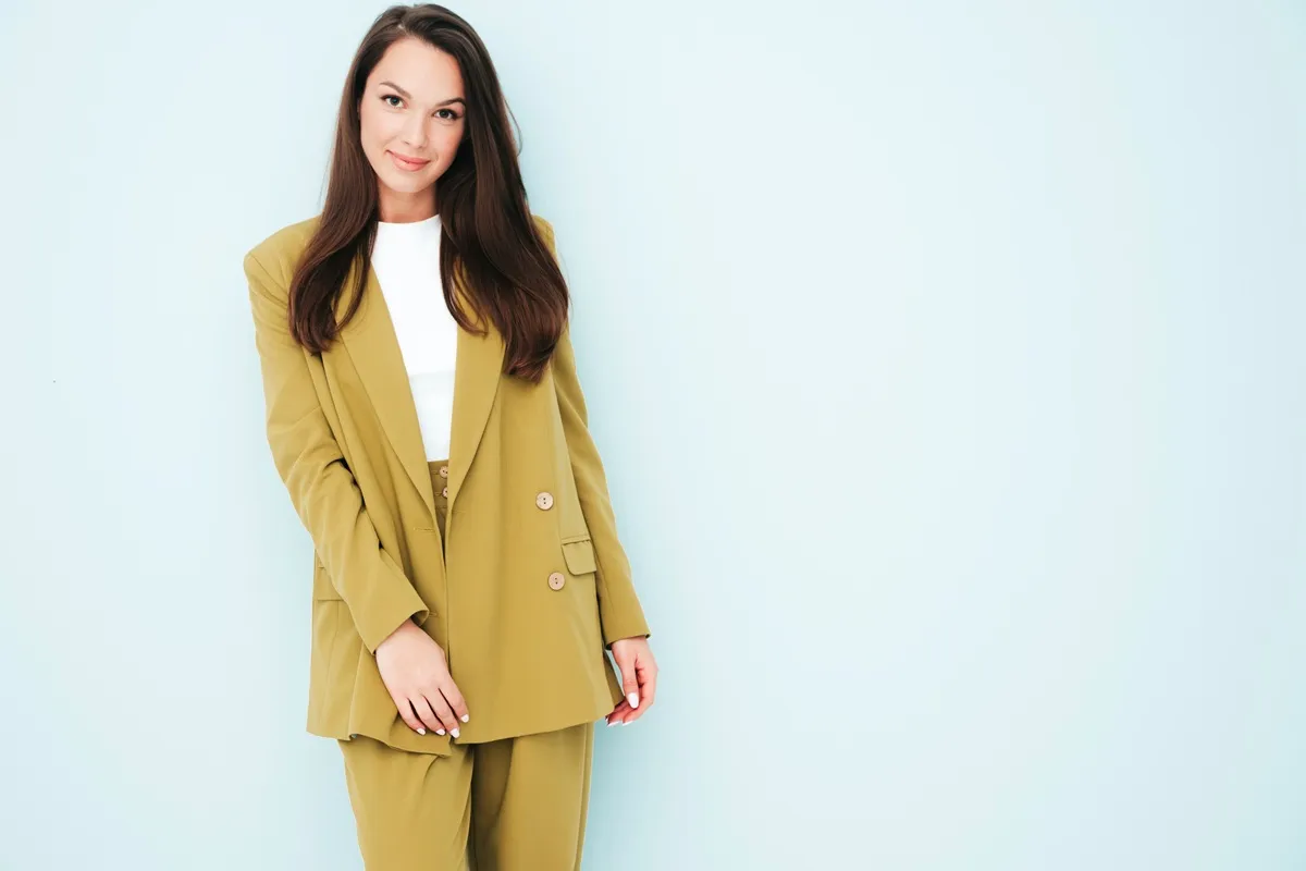 Blazer oversize color senape da donna – outfit elegante e moderno per l’ufficio