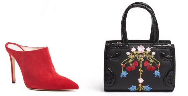 Un’accoppiata vincente, bag&shoes, assolutamente unica: delicate mules dalla forma ammaliante in pelle scamosciata rossa e tacco svettante per tutte le principesse del nuovo millennio.