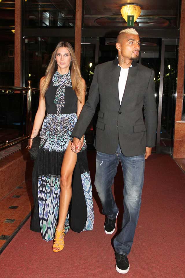 Melissa, infatti, ha indossato un bellissimo abito Just Cavalli lungo fino ai piedi e con un grande spacco sulla gamba. Ai piedi un paio di sandali color arancio che hanno contrastato le tonalità più scure del resto del suo look. Melissa e il suo compagno Kevin Prince Boateng si trovavano all’hotel Mariott di Milano.